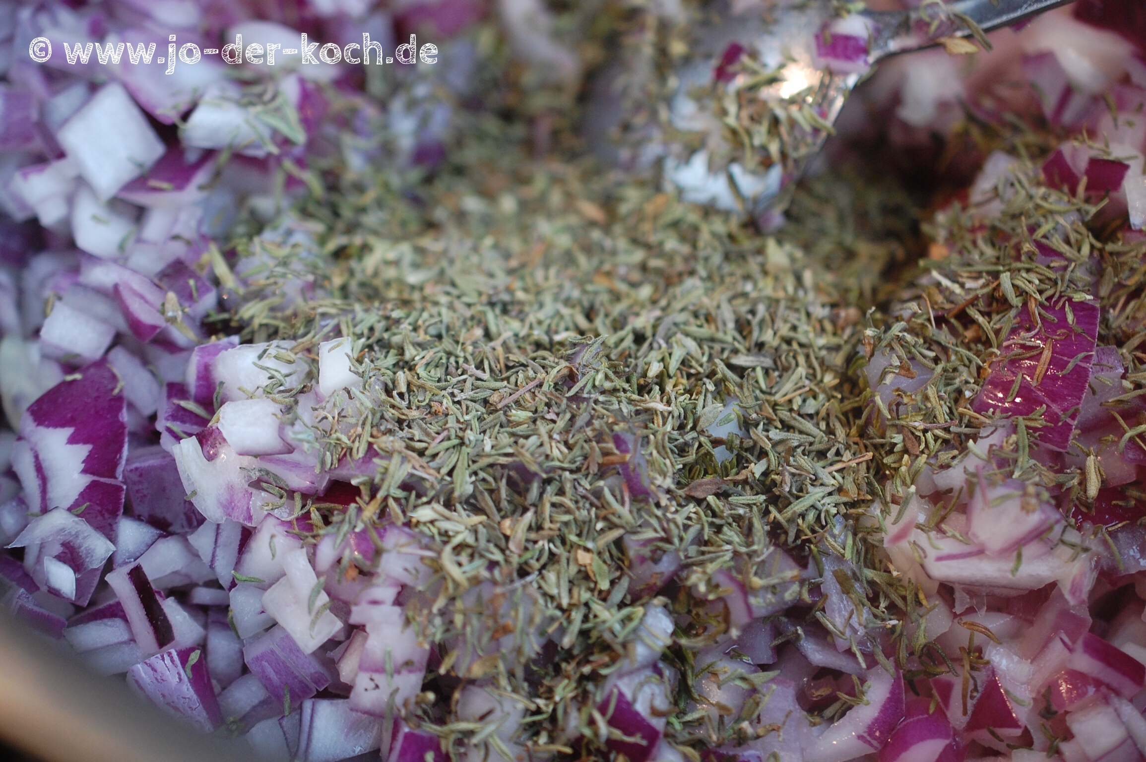 Am Anfang wird es echt zum Heulen: Zwiebeln schälen und in kleine Würfel schneiden. Damit ihr wieder mit eurem Küchenlatein bei der nächsten Küchenparty glänzen könnt hier mal noch ein Begriff: Die Zwiebeln werden brunoise geschnitten, also in kleine Würfel.